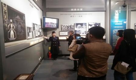 人民網(wǎng)“尋找歷史記憶 緬懷抗戰(zhàn)英烈”采訪(fǎng)團(tuán)成員在長(zhǎng)春偽滿(mǎn)皇宮博物院采訪(fǎng)。
