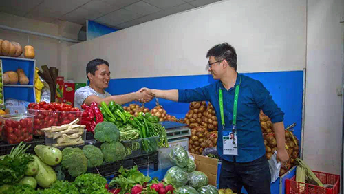 分發(fā)完盒飯,劉會彬說一會要去菜市場采購一次食材,邀請我們一同前往,小編當(dāng)然欣然應(yīng)邀。途中,又開心地交流起來。