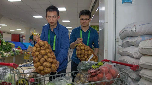 兩位“90后”大廚已經(jīng)來阿斯塔納快3個月了,每天不是在做飯就是在送飯、采購的路上。每周都要去菜市場采購兩三次,一是因?yàn)閿?shù)量龐大,二是保障食材的新鮮度。剛來阿斯塔納的時(shí)候,兩個人到處奔走尋找適合中餐的原材物料,幾乎跑遍了阿斯塔納大大小小的農(nóng)貿(mào)市場和超市,很多食材和調(diào)味品甚至要從阿拉木圖和周邊城市調(diào)配。綜合比較之下,最終選定了郊區(qū)的一家農(nóng)貿(mào)超市,因?yàn)檫@里的食材較為新鮮、價(jià)錢也適中,只是路途遙,每次往返開車都要將近2個小時(shí)。