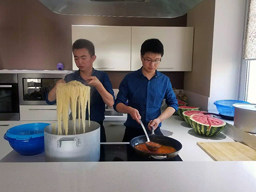 于是,趕緊從中國館運(yùn)營總監(jiān)劉芳那里了解到關(guān)于大廚的一些信息。劉芳總監(jiān)介紹到,青島世園集團(tuán)從中標(biāo)本屆阿斯塔納世博會運(yùn)營商開始,就在琢磨如何做好志愿者的保障?紤]到志愿者國外生活經(jīng)驗(yàn)不足,加上中外飲食差異較大,便決心提供良好的餐飲保障,讓志愿者展現(xiàn)最良好的精神狀態(tài)和工作狀態(tài)。隨后,從青島世園集團(tuán)旗下的五星級酒店——世園寒軒酒店精心挑選兩名廚藝精湛的廚師駐守在阿斯塔納,專門保障志愿者的飲食。來哈之前就對兩位廚師進(jìn)行過多次業(yè)務(wù)培訓(xùn),來哈之后根據(jù)當(dāng)?shù)貙?shí)際情況又制定采購標(biāo)準(zhǔn)等一系列管理制度,并積極關(guān)注志愿者需求,不斷改進(jìn)飲食,確保切實(shí)為志愿者們提供最可口、最可心的飯菜,志愿者們對兩位大廚的廚藝可是贊不絕口。