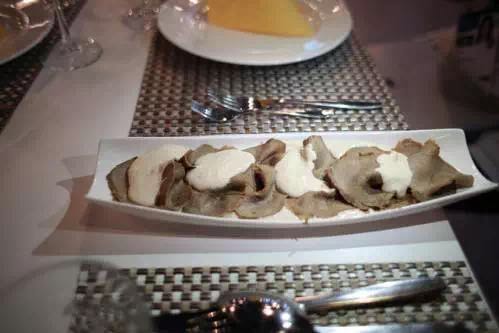 一道好的Carpaccio幾乎要用上一天的時(shí)間,因此意大利人一般也只有雙休日才能好好享受這道前菜。作為意大利經(jīng)典的開胃菜,長相普通的Carpaccio讓人感覺出乎意料的鮮美,幾片薄得透明的生肉片最大限度地保留了牛肉的生鮮美味,柔軟綿延。