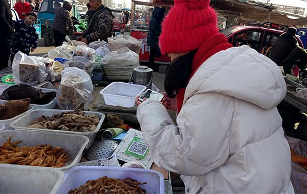 “小伙子,手機帶了嗎?掃一掃,你就用微信付款吧!”這是攤販大爺?shù)穆曇簟=K徐州市豐縣的“閆家小旭”對家鄉(xiāng)集市上菜攤前的二維碼,頗為吃驚,不敢相信。她說:“不到一年時間,發(fā)現(xiàn)家鄉(xiāng)變化真得好大。中國特色社會主義‘走進(jìn)新時代’,農(nóng)村里的樓房越蓋越高,院子也越來越寬敞。鄉(xiāng)間小道變成平整寬闊的水泥路,飛奔的火車也通往家鄉(xiāng)。手機支付走進(jìn)鄉(xiāng)間集市攤販,西紅柿、茄子、黃瓜、豆角等反季節(jié)蔬菜也成為春節(jié)餐桌上的家常菜!