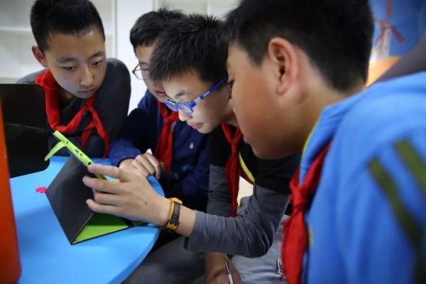幾位小學生正在用平板電腦設計作品(圖片來源:半月談)