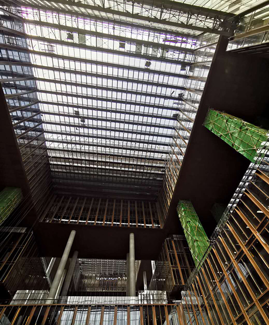 該項目C標段由中建八局西南公司承建,自開工建設(shè)以來經(jīng)歷著一項又一項的艱難挑戰(zhàn):17天內(nèi)完成一座引領(lǐng)全國的標志性臨建工程施工;用不足鳥巢1/4的時間完成2倍于鳥巢噸位的鋼結(jié)構(gòu)安裝;超大跨度魚腹式張弦梁現(xiàn)場拼接及高精度吊裝;使用懸掛腳手架作為大跨度采光頂屋蓋體系施工平臺;建設(shè)工程“魯班獎”、LEED鉑金、綠色建筑三星級認證等國內(nèi)國際一流施工標準要求,等等。