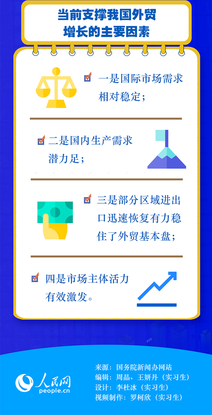 商務(wù)部原副部長魏建國在接受人民網(wǎng)“強(qiáng)觀察”欄目記者采訪時表示,上半年的外貿(mào)增長主要有三方面原因:首先,高效統(tǒng)籌疫情防控和經(jīng)濟(jì)社會發(fā)展取得實(shí)效。其次,多措并舉穩(wěn)市場主體。隨著國家穩(wěn)經(jīng)濟(jì)一攬子政策措施的落地見效,外貿(mào)保穩(wěn)提質(zhì)等各項(xiàng)工作加快推進(jìn),我國外貿(mào)市場主體活力有效激發(fā)。此外,以國內(nèi)大循環(huán)為主體、國內(nèi)國際雙循環(huán)相互促進(jìn)的新發(fā)展格局的作用正在發(fā)揮出來。