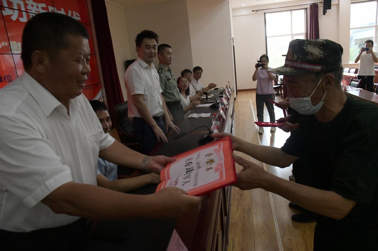 8月1日下午,灤平縣金溝屯鎮(zhèn)下營(yíng)子村聯(lián)合愛心企業(yè)中國(guó)郵政儲(chǔ)蓄銀行灤平支行、灤平盛陽村鎮(zhèn)銀行金溝屯支行和承德久財(cái)農(nóng)牧開發(fā)有限責(zé)任公司共同舉辦了“退伍不褪色 建功新時(shí)代”第二屆“八一”慰問退役軍人座談會(huì);顒(dòng)現(xiàn)場(chǎng),大家歡聚一堂,共同慶祝中國(guó)人民解放軍建軍95周年,共敘魚水深情,并為優(yōu)秀退役軍人頒發(fā)榮譽(yù)證書。 王海琦 郎朗 攝